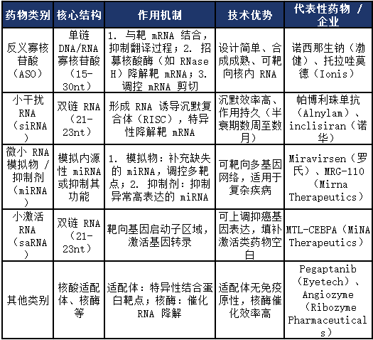 根据分子结构与作用机制的差异,小核酸药物可分为以下主要类别,各类别在作用方式、技术特点及应用场景上存在显著差异: