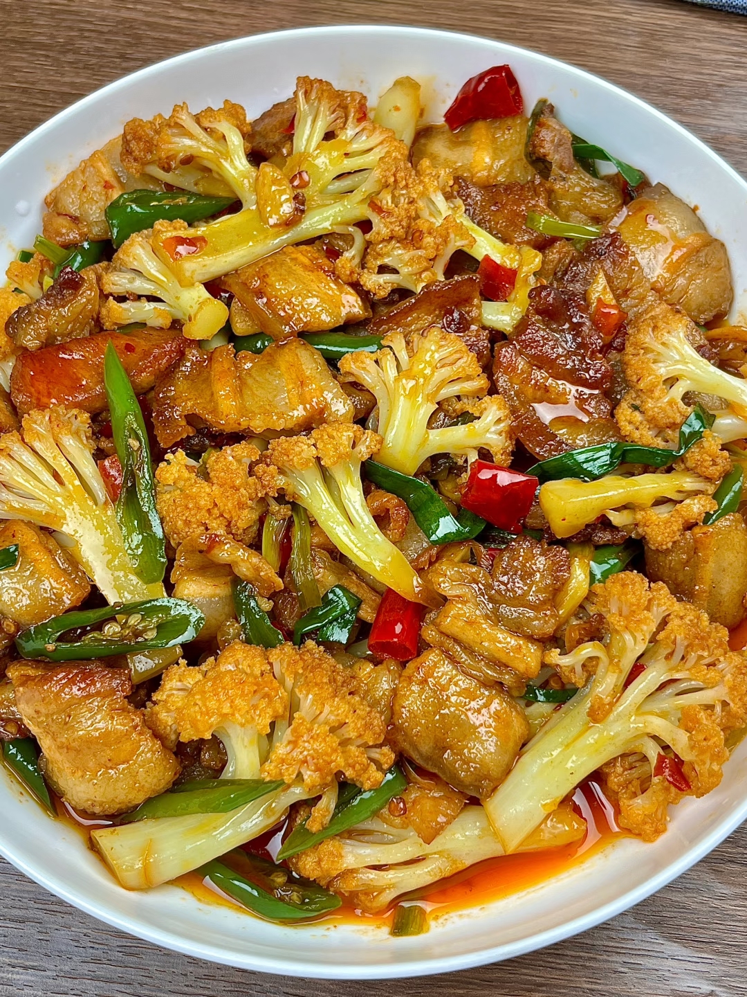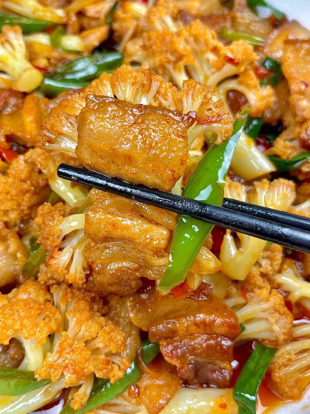 其实这道菜最初是我妈传给我的。小时候家里穷,只有过年才能吃上肉。我妈就把花菜和少许五花肉一起炒,撒点豆瓣酱,装在搪瓷盆里放在煤炉上煨着。我和弟弟围着炉子转,闻着香味直咽口水。现在条件好了,我往里面加了蒜蓉辣酱和糖,味道更丰富了,但每次炒这道菜,总能想起妈妈系着围裙站在煤炉前的背影。