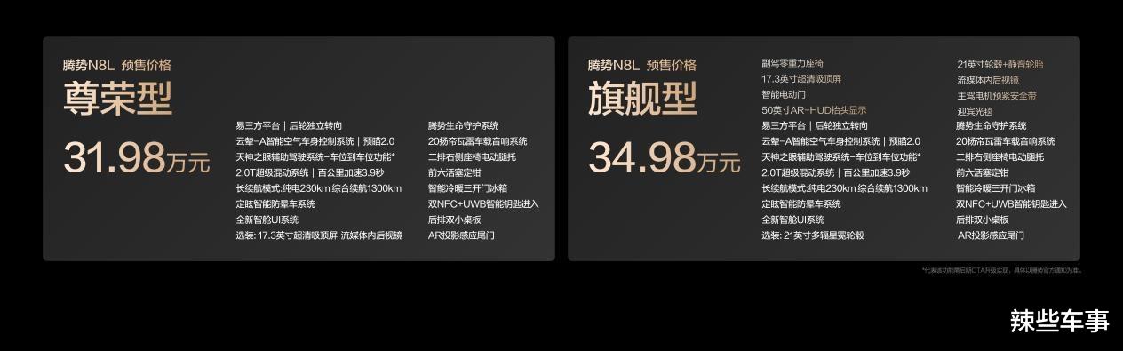 全系标配易三方、云辇-A+路面预瞄2.0!腾势N8L 31.98万起预售