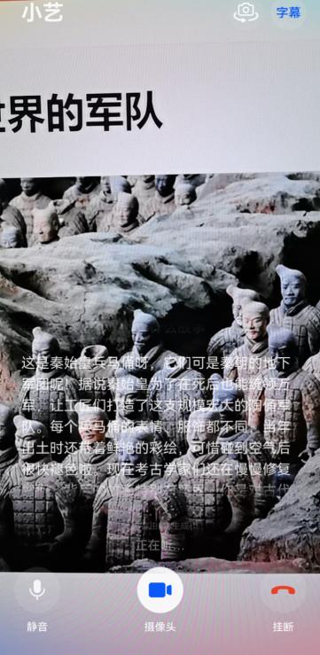出发前做攻略,我看到一张兵马俑照片,想先试一下。于是长按手机底部导航条唤醒小艺,点击右下角的电话图标并打开摄像头,进入“小艺看世界”模式;接着,将镜头对准电脑屏幕上的兵马俑照片,问道:“给我讲讲这个有什么故事?”