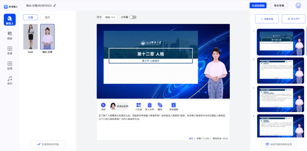 在山东师范大学,由中国联通与心理学院共同开发“AI助教数字人”:老师只需把PPT和讲稿一键上传,它便自动“备课”,课上甚至可代班授课,还能听懂语音、文字提问,秒搜教材与题库,给出精准知识点和学习路径;课后,后台通过记录答题轨迹、互动频次,即时生成“千人千面”的学习报告,并自动推送配套练习;自习时段,它还能识别学生情绪,适时递上“别紧张,再试一次”的小暖屏,让自学也有陪伴感。凭借这份全时陪伴,这位“24小时不下线”的数字助教在2025年第二届“金灵光杯”数字教育专题赛上,获得了教育赛道全国二等奖。