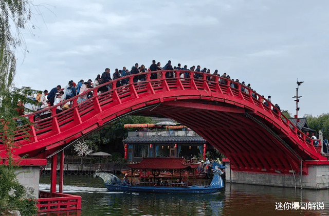 旅行团踏过的地方可不止是泉州,他们还来到了当时北宋的首都——汴京,在现实中开封的虹桥人挤人。