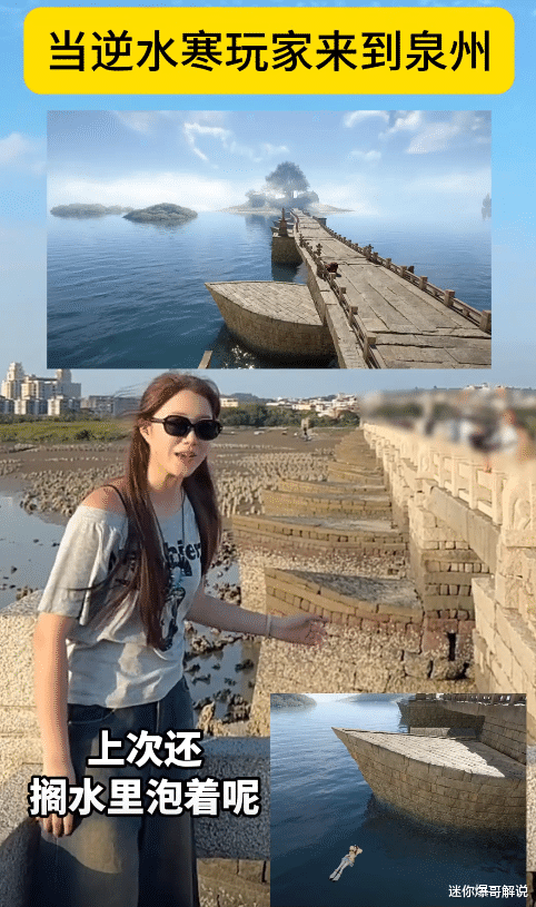 但你要是在游戏里,不仅可以看到这座千年建筑,还能探索洛阳桥下残留的生蚝壳,泡在海水里享受日光浴!