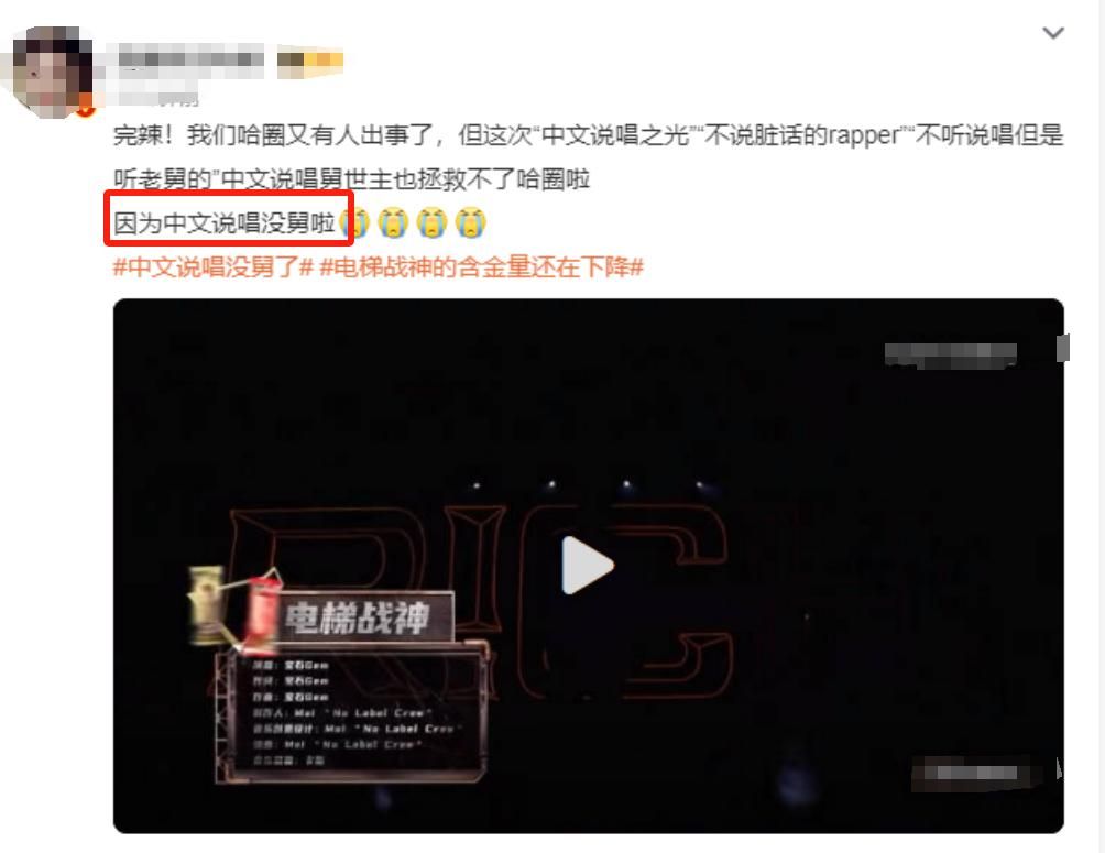 对此,有网友更是非常感慨的说出了一句一语双关的话:“中文说唱没舅了。”