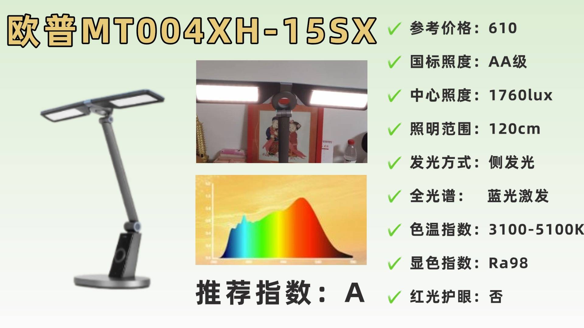 孩子的护眼灯哪种好?欧普MT004XH-15SX采用的是ABS和铝合金材质,底座整体来说是比较重的,它的灯头挺有特色的,采用的双翼旋转式的灯头,可以多角度调节,比较方便而且照明范围能达到160cm,能满足多种使用场景。功能上具备了智能调光等功能,可以根据光环境的变化智能调节亮度,使用很省心。