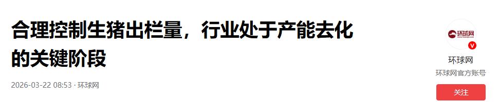 2026年3月,全国生猪均价跌破11元/公斤,创近8年新低。农业农村部启动产能调控,央地累计收储4.5万吨冻猪肉,猪肉零售价跌至个位数。