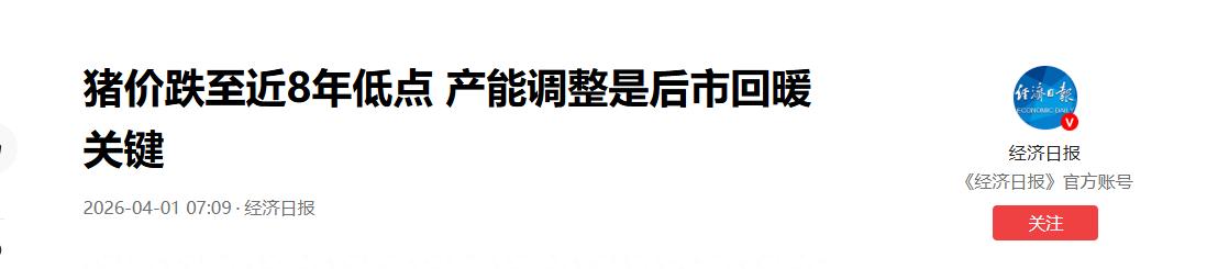 这种暴涨暴跌的循环,在国内猪肉市场跑了几十年,却在 2026 年彻底踩了刹车。