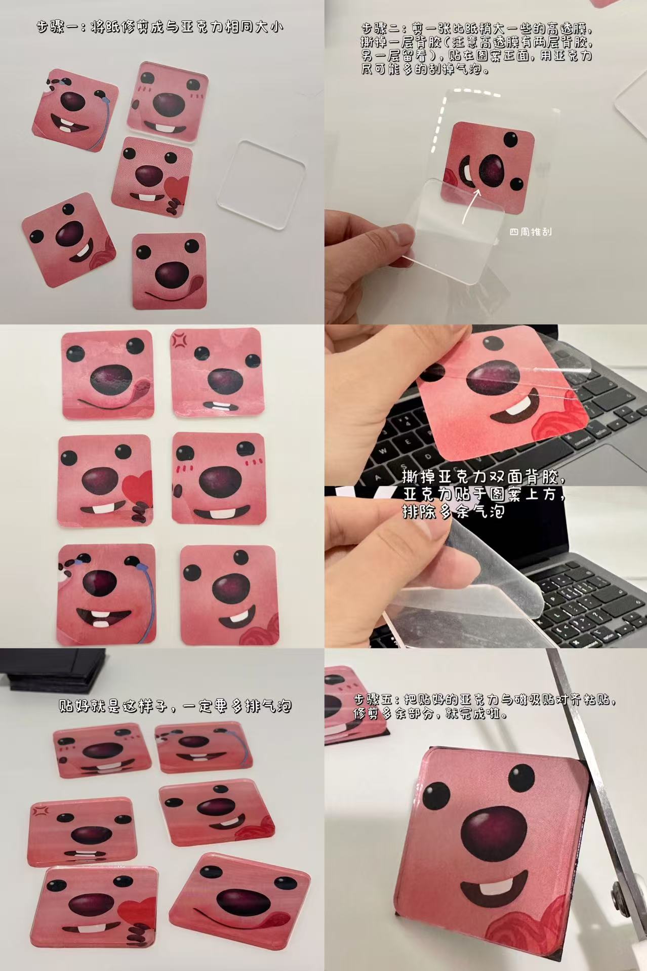 ③把贴好的亚克力与磁吸贴对齐粘贴,修剪多余部分,就完成啦!