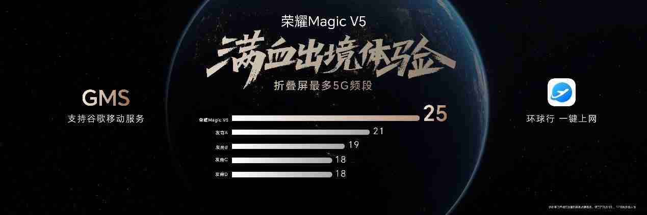 在出境体验方面,荣耀Magic V5支持行业最全的25个5G频段和谷歌全家桶,环球行一键上网;在通信方面,荣耀Magic V5全版本支持北斗卫星通信,天涯海角,时刻在线。