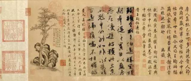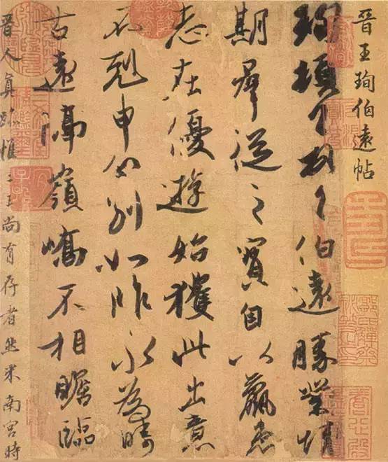 王羲之《兰亭序》王献之《中秋帖》王珣《伯远帖》杨凝式《韭花帖》柳公权《蒙诏帖》欧阳询《季鹰帖》米芾《蜀素帖》黄庭坚《松风