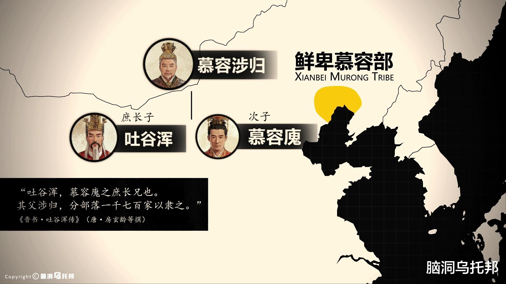 慕容涉归的庶长子名吐谷浑,所谓庶长子其实就是小妾生的长子。而慕容涉归的次子慕容廆则是嫡出。