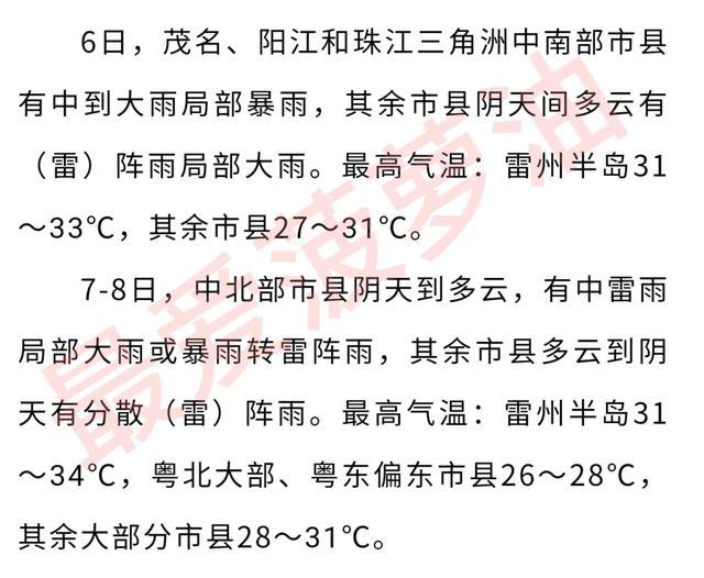 粤北、珠江三角洲、粤西部分市县有中到大雨局部暴雨