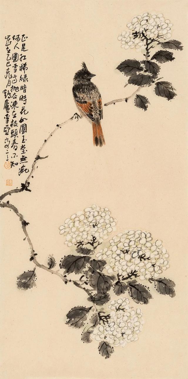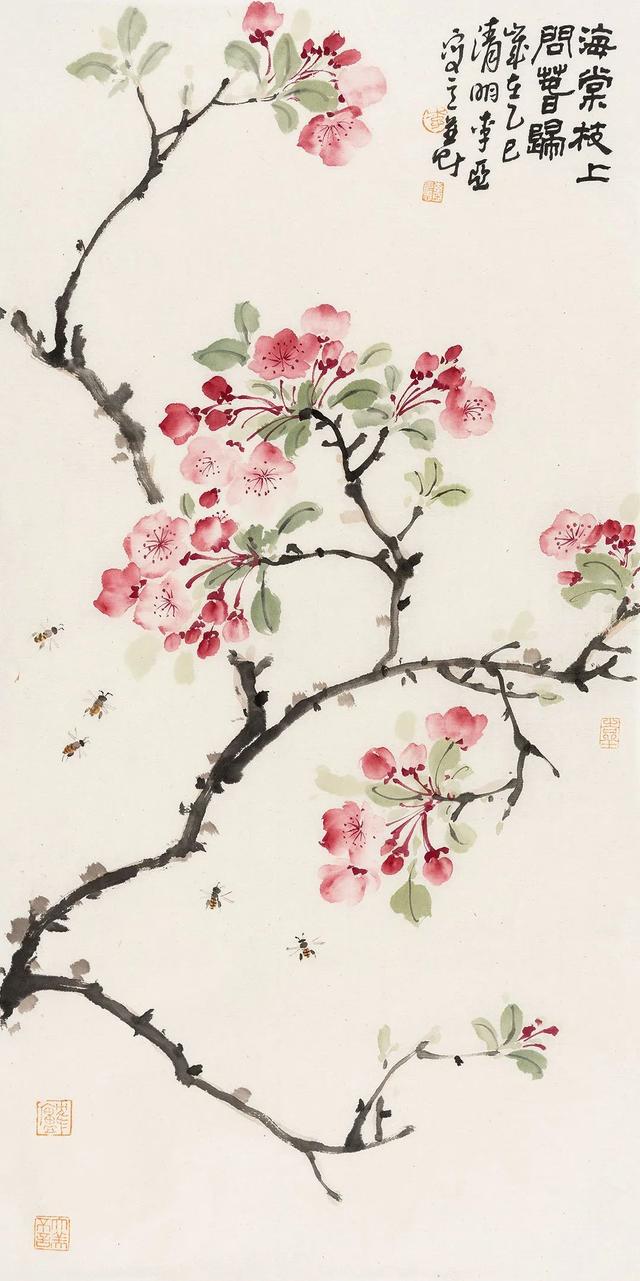海棠枝上问春归-纸本设色-68x34cm-2025