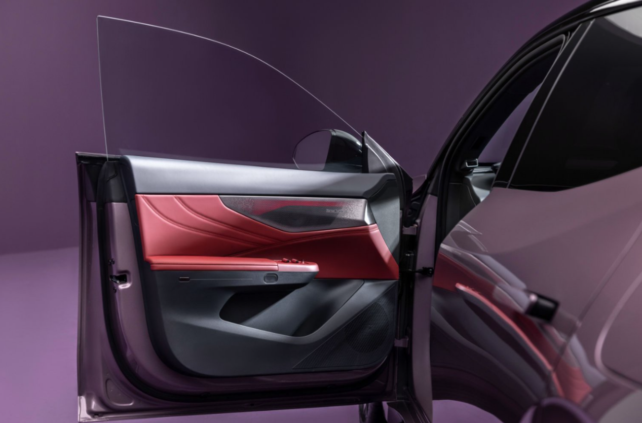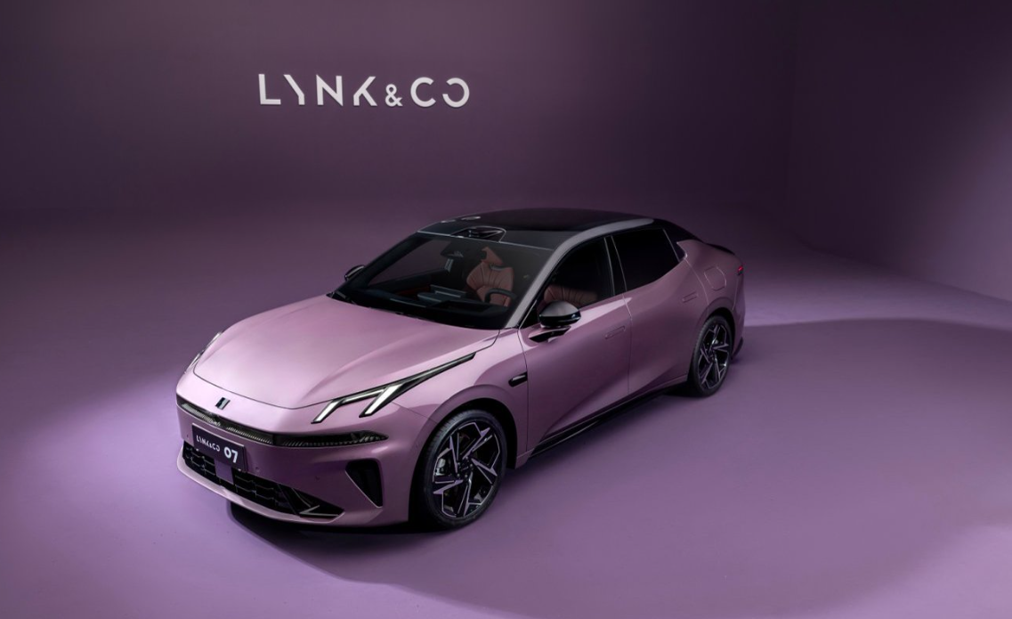 全新领克 07EM-P 在设计上兼顾潮流感与细节表现。外观部分,进化后的 Y 字形灯组采用扁平化处理,一体式贯穿灯带中嵌入红色晶体模块,点亮后形成独特视觉符号,延续领克家族标志性灯光风格。车身色彩新增极光银、璃光紫两款,极光银以细腻金属质感呈现光影变化,璃光紫在不同光线下折射出多层次紫色调,满足年轻用户个性化需求。车身侧面立体腰线源自概念车设计,硬朗折线与平滑曲面过渡自然,搭配大尺寸运动轮毂,整体姿态富有动感。