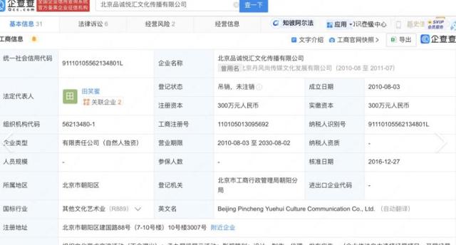 性格互补的两人很快从工作伙伴发展为无话不谈的闺蜜,甚至一起创业成立了“北京品诚悦汇文化传播有限公司”,田笑蜜担任法定代表人,朱丹则出任监事。