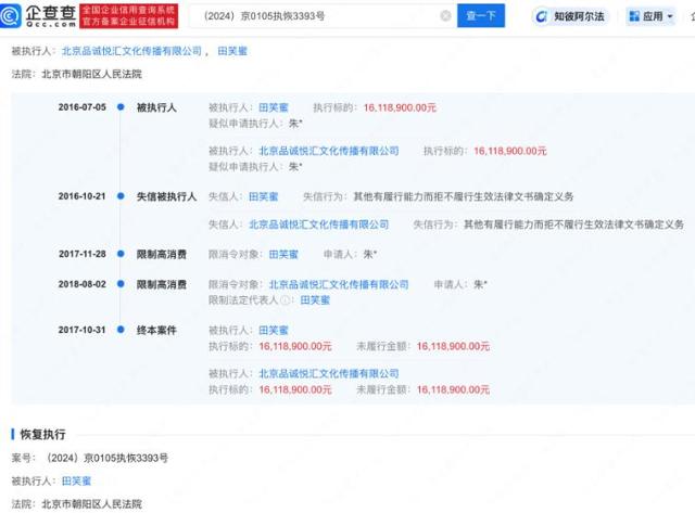 不过,正义或许会迟到,但绝不会缺席,2024年7月,法院突然恢复执行程序,对田笑蜜名下股票、存款等资产进行强制划扣。