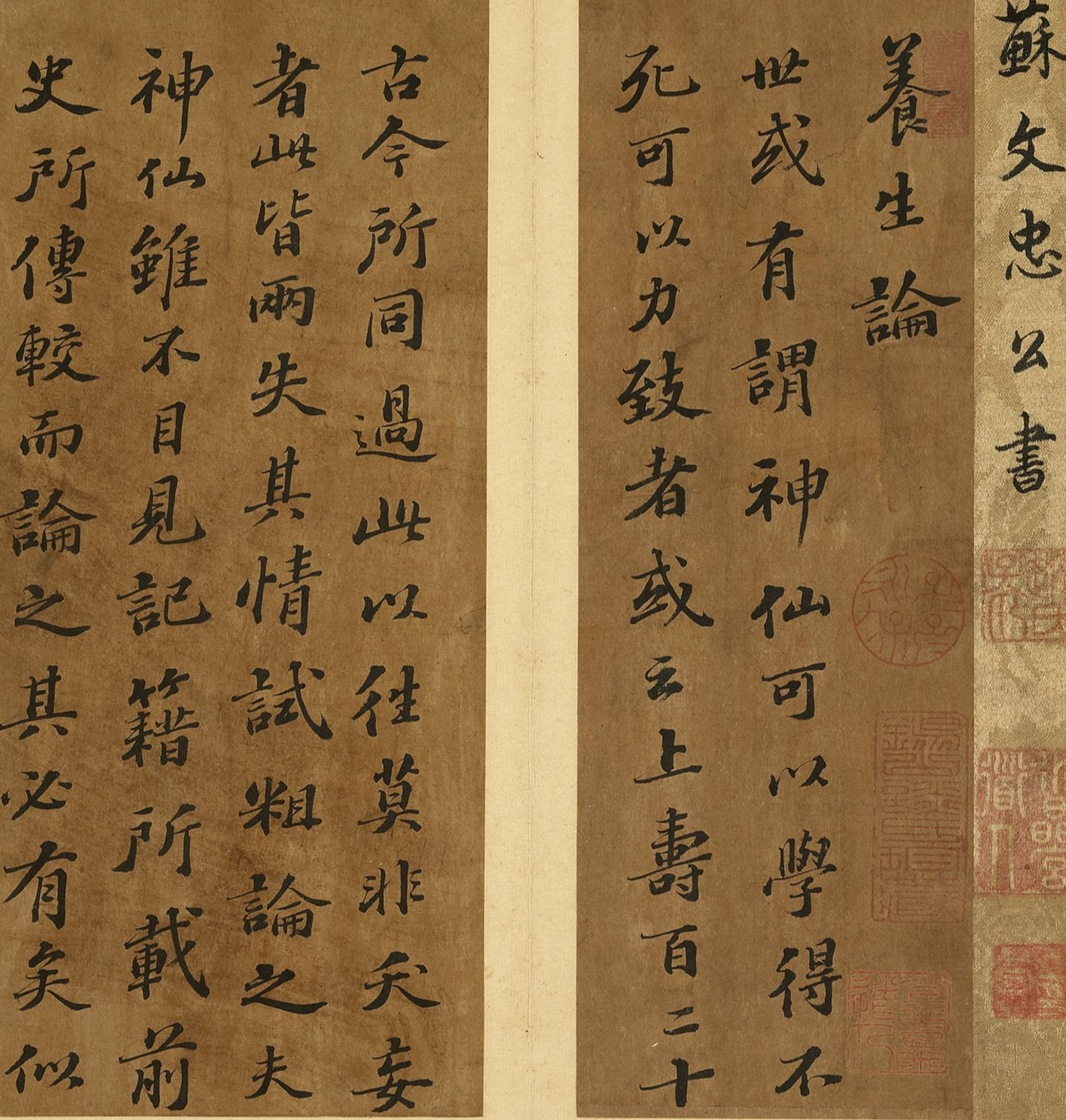 好,咱今天就聊一块宝——苏轼写的《养生论》行书册。您别看这名字叫《养生论》,内容是说养生的,但字儿可是地地道道的苏东坡笔法,里头门道深了去了。咱不扯苏轼在黄州吃过啥猪肉,也不聊他官场咋起伏,就盯着这字儿本身,掰开揉碎了说,保证您看完,再去看苏轼的字,眼神儿都不一样。