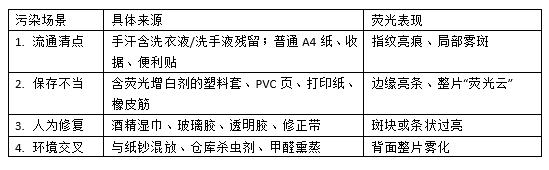 塑料钞基材(Guardian®聚丙烯薄膜)本身不含荧光剂,但极容易静电吸附外界荧光物质,且一旦附着就几乎不可逆。常见污染源路径: