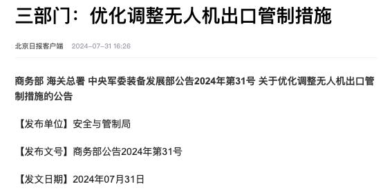 但9月份中国反手就对无人机实行出口管制