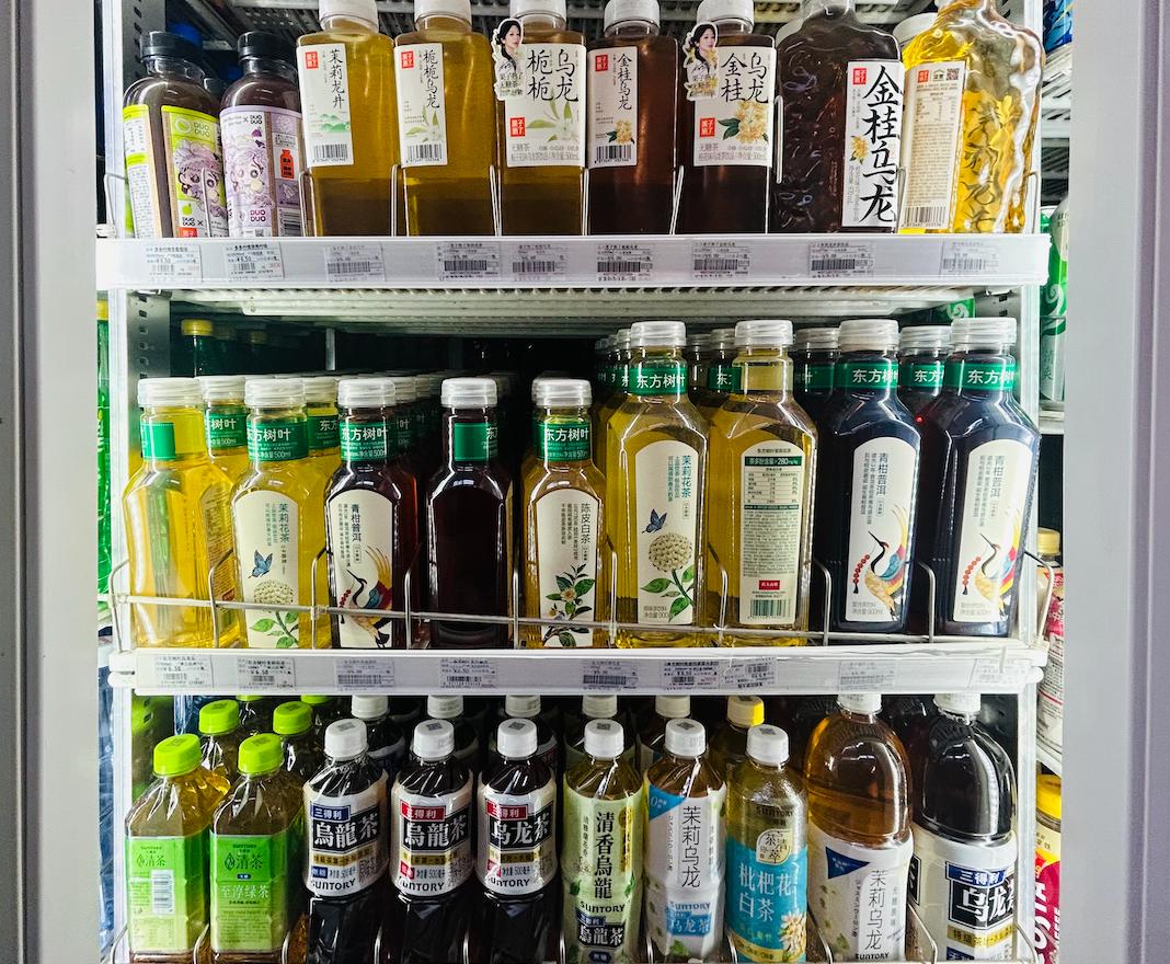 周大鑫在青海某三线城市开了一家便利店,他店里的无糖茶进得最多的是东方树叶和果子熟了,各自占了两列货架。茶小开、元气森林相对进得比较少,两个品牌共同占据一列货架。而作为大品牌的三得利,她只进了少量的货,跟其他品牌挤在一列。