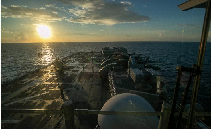 按理这艘两栖攻击舰是美军面子工程之一,里面装的是全套美式骄傲和五千号人的自信,以往在波斯湾耀武扬威多年,这次却逃得比谁都快,刚吃了亏一刻钟都没敢多待,头也不回地从波斯湾溜进印度洋。