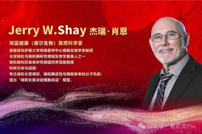 琛蓝健康(康尔生物)首席科学家、美国德克萨斯大学西南医学中心细胞生物学系教授、全球端粒与端粒酶研究领域生物学奠基人之一、端粒酶和抗衰老研究领域世界顶级教授——Jerry W。 Shay杰瑞·肖恩教授通过视频发表致辞。他指出,康尔生物明星产品“永春健®”所采用的JadeAging™国际品牌原料,其通过提高端粒酶活性、优化细胞功能的作用机制,与他的科研成果高度契合。此次,与端粒酶应用研究领域世界顶级专家杰瑞·肖恩教授合作,将进一步强化康尔生物在抗衰老领域的领军地位。