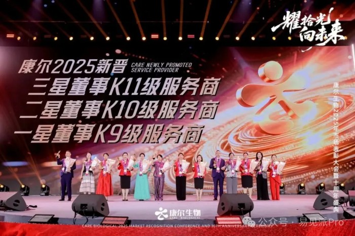 十年征程,繁星璀璨。本次大会隆重表彰了2025年度新晋K4至K12级服务商及卓越功勋人物。他们以信念开拓市场,以实绩照亮品牌。每一份荣誉,不仅镌刻着奋斗者的足迹,更见证着康尔平台成就平凡创不凡的力量。