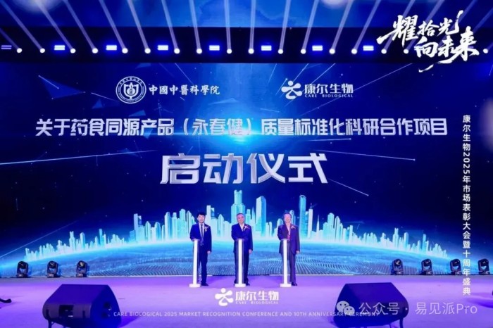 康尔生物明星爆品“永春健®”从源头开始,始终恪守严苛的质量标准。所有原料严格遵循《中药材生产质量管理规范(GAP)》实施标准化种植,并在GMP标准下完成生产,真正实现从田间到指间的全链路可控、可溯、可信。此次,康尔生物与中国中医科学院就“药食同源产品(永春健)质量标准化”展开科研合作,双方将持续深化药食同源产品的科学化与标准化建设,从源头守护品质,以科技赋能传统,让千年养生智慧在新时代焕发光彩,为人类健康贡献中国方案。