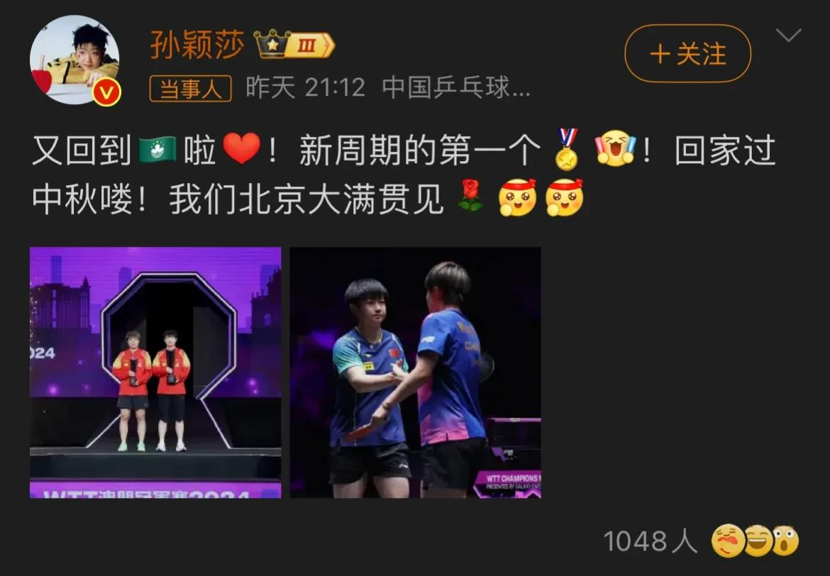 孙颖莎真的让作者明白了什么叫实力与人品共存;还这么可爱,这样的人怎么会有人不喜爱呢?