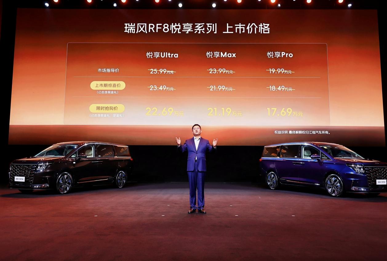 3月28日,瑞风RF8悦享系列正式上市,新车共推出Pro、Max、Ultra三款配置版本,限时抢购价17.69万元起。