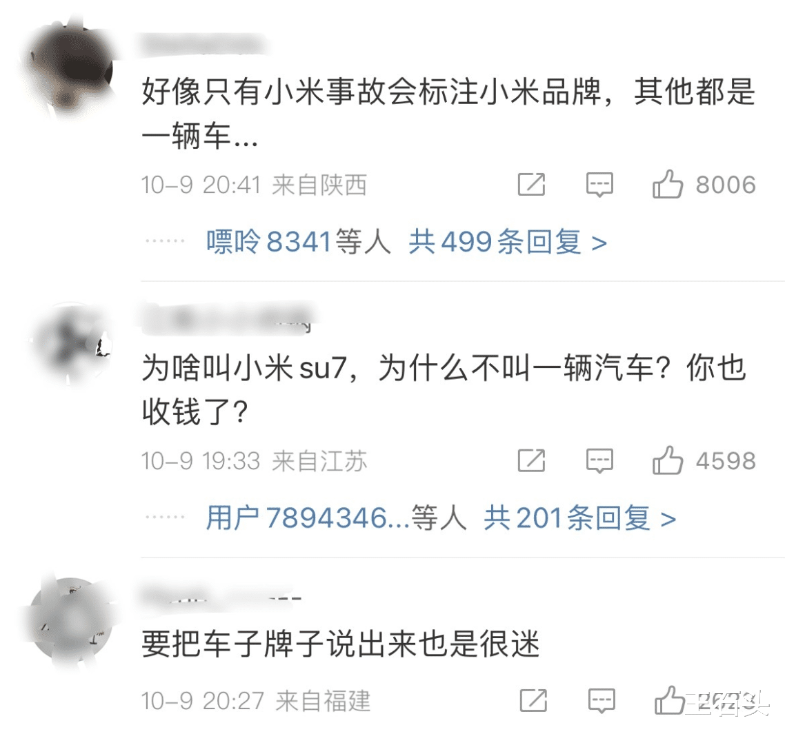 这让人不禁想问:为啥其他交通事故不点名品牌,偏偏这次就要突出是小米SU7呢?