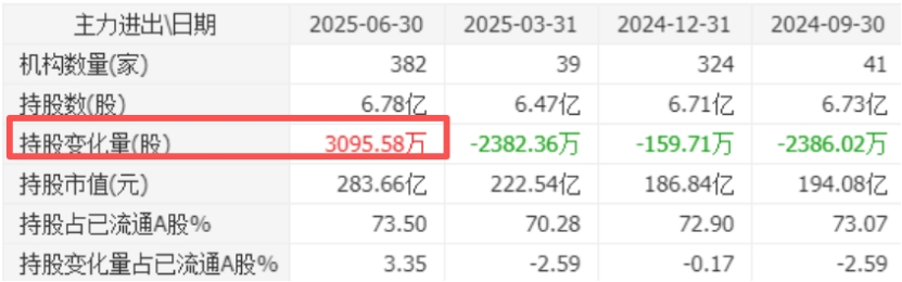 机构动态:二季度持股机构数1076家,较一季度增加828家,合计持股5.02亿股,加仓2264万股。