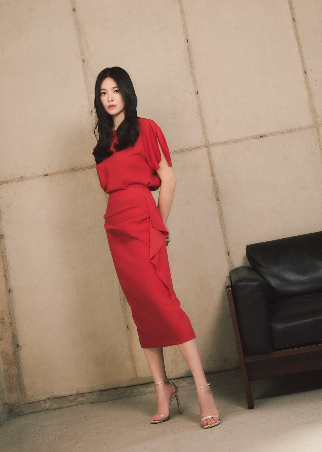 在这组以“ANOTHER IMPRESSION”为主题的画报中,宋慧乔展现了其惊人的身材比例和奢华精致的魅力。