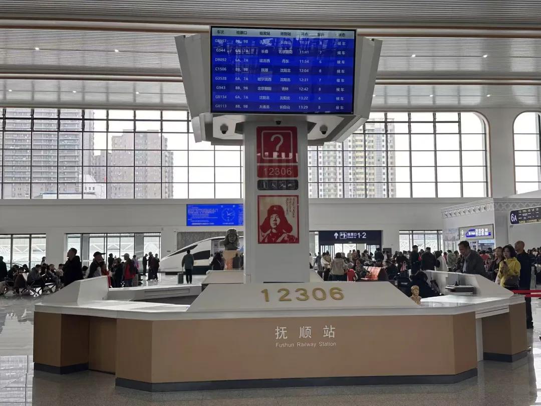 新开通的抚顺高铁站内也有许多雷锋元素。(图/吃卜宝 摄)