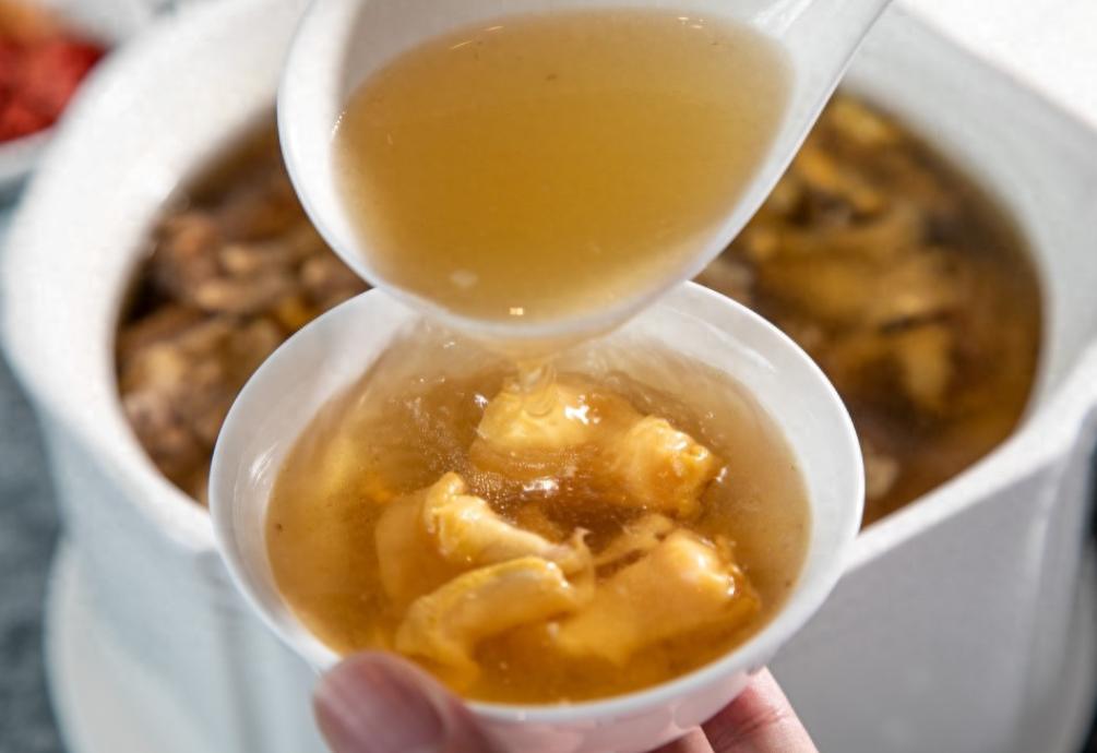 鸡是当地散养的土鸡,肉质紧实,鲜味充足。搭配上广式药膳汤的老配方,不仅气香味美,还能借“食补”养生。