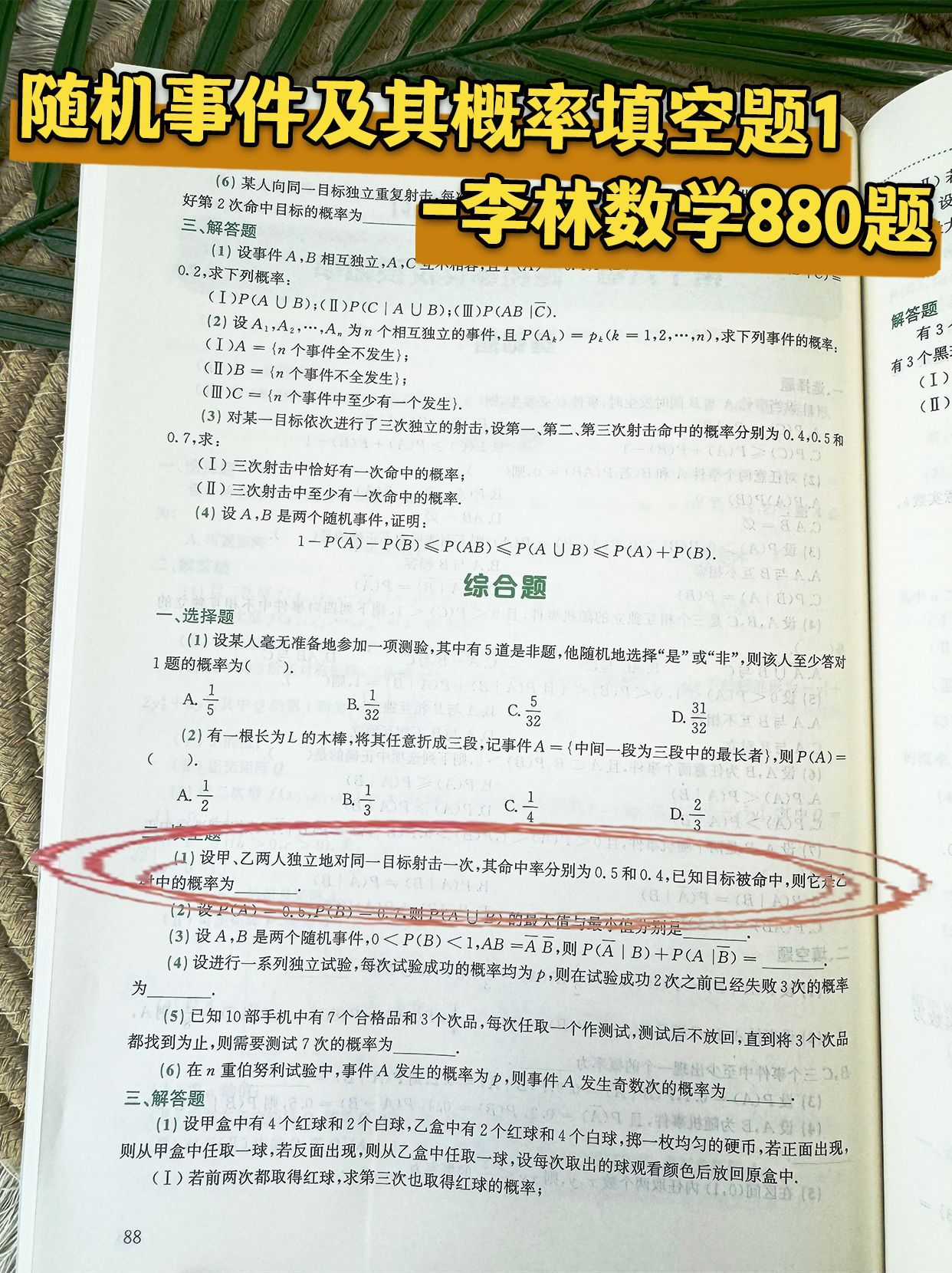 2026李林考研数学精讲精练880题数学一---概率论与数理统计---第十六章随机事件及其概率---综合题---填空题1