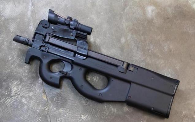 其中P90在90年代初期问世,属于一种单兵自卫武器,它的造型科幻而又独特,显得方方正正,而且是无托结构,发射专门为其研制的5.7×28毫米子弹,使用一个容量为50发的横向塑料透明弹匣供弹,作战时将弹匣横向安装在机匣上面。