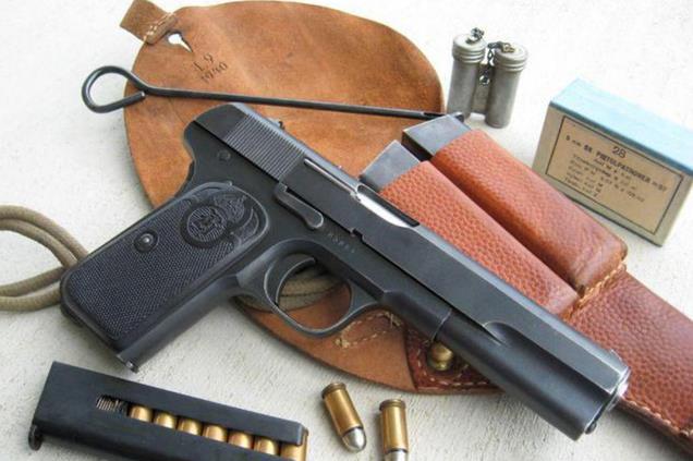 第四种是在1910年定型的勃朗宁M1910型手枪,这个定位和第一个M1900一样,都是小口径防身手枪,所采用的也是7.65×17毫米手枪弹,不过后期还推出了9毫米版本,发射的是9×17毫米子弹,同样这枪曾在民国时代的中国也很受欢迎,被各路高级军官选用个人佩枪。