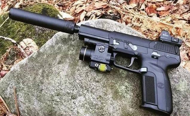 FN57手枪别看在90年代末问世,但它具备了模组化能力,套筒底座下面可以安装红外线激光指示器、战术手电等,枪管前端可配备消音器,手枪套筒顶部还可安装瞄准镜。