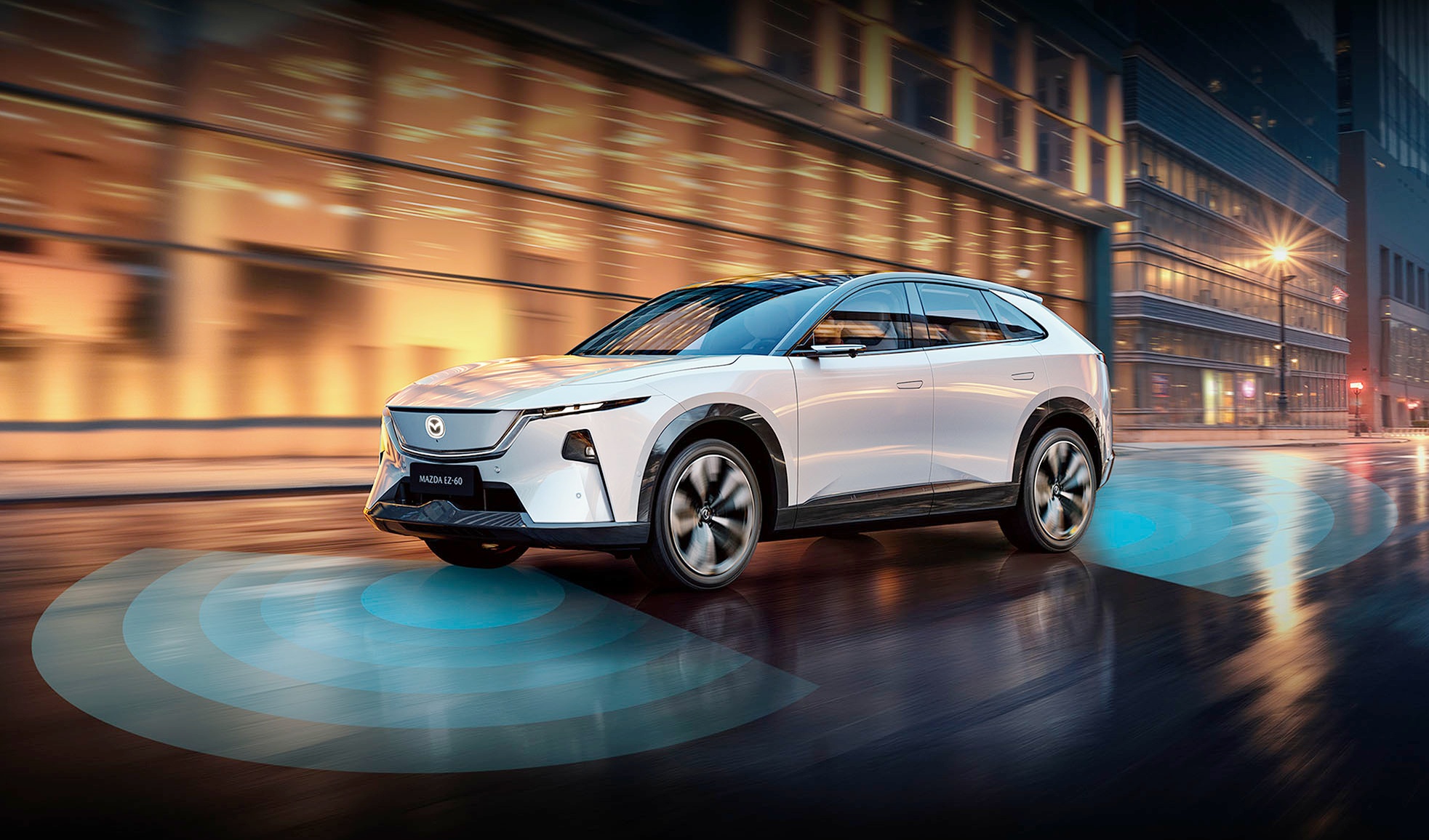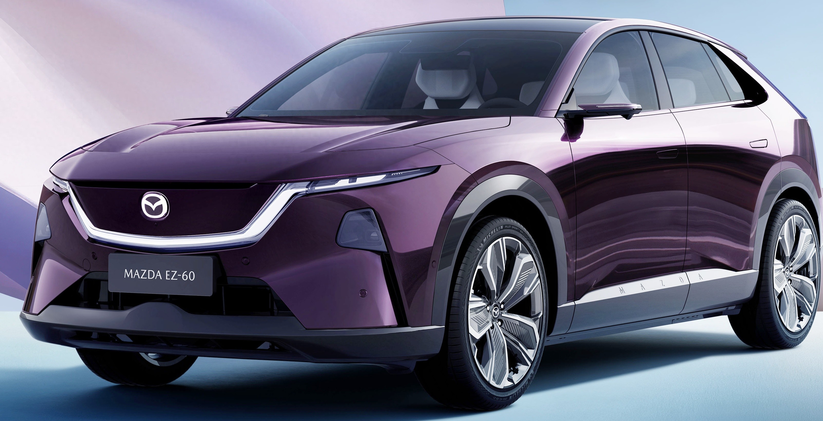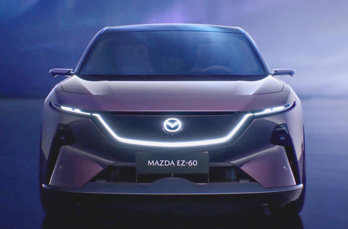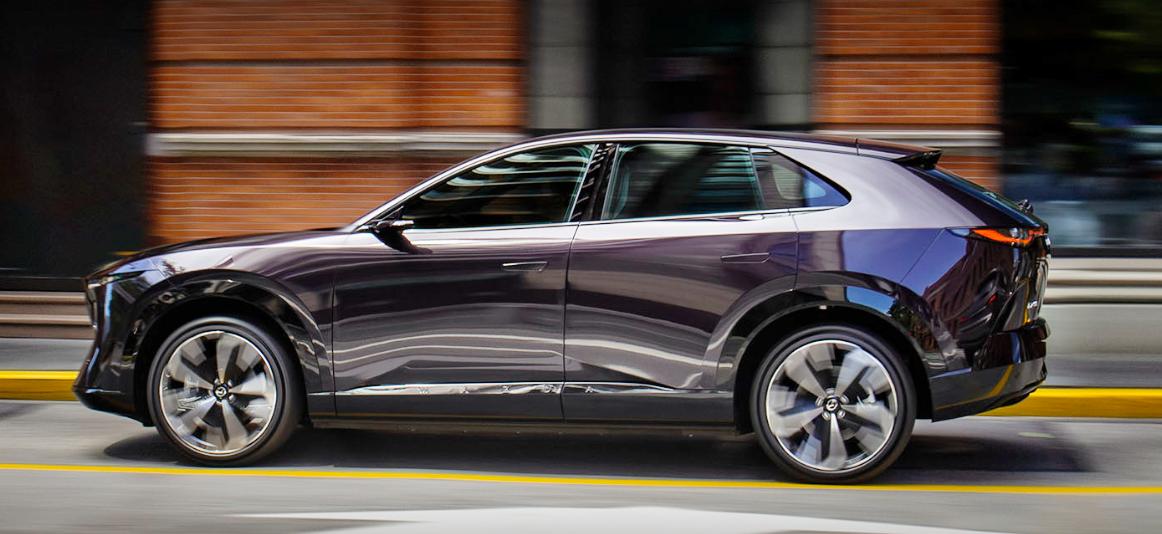 车身侧面,马自达EZ-60展现出运动姿态,凌厉的线条以及短前后悬的设计也令车辆看起来更加“锐利”。另外,新车还对宽大的C柱做了镂空处理,搭配隐藏式门把手、电子外后视镜以及大尺寸轮圈,并提供19英寸和21英寸轮辋。车身尺寸方面,新车长宽高分别为4850毫米/1935毫米/1620毫米,轴距为2902毫米,定位中型SUV,足以营造舒适的车内空间。