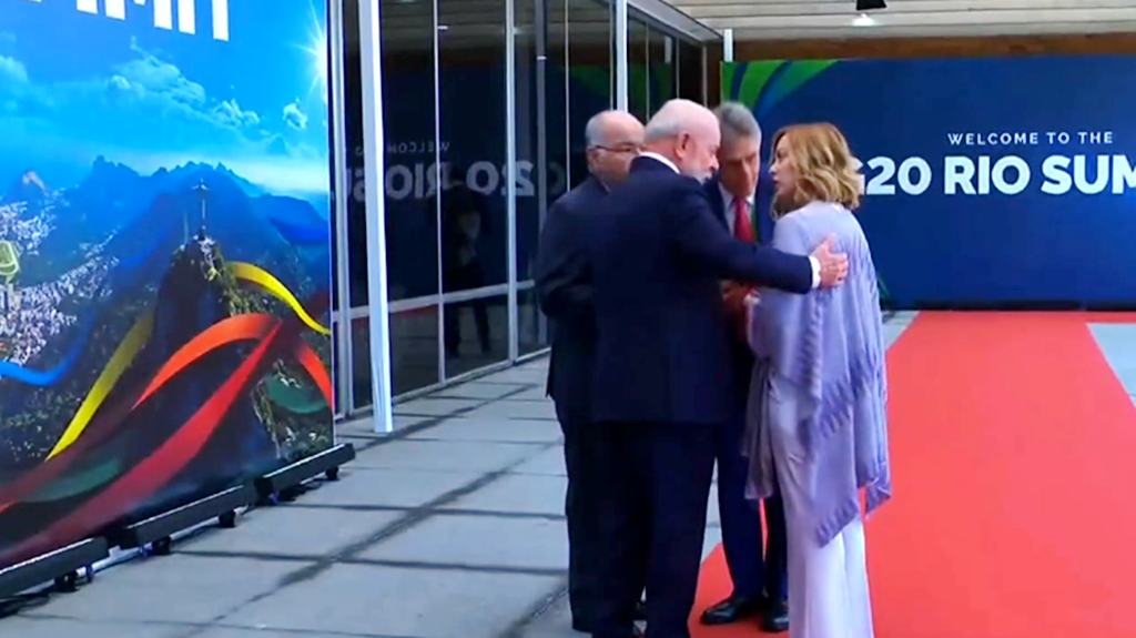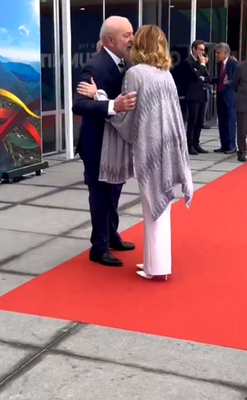 当意大利美女总理和巴西总统见面后,两人立马行贴面礼,不仅如此巴西总统还和其他老人围着意大利美女总理聊天,聊天期间巴西总统不停揽着意大利总理的后辈和肩膀画面非常亲密,而巴西总统见到其他总理夫人的时候也就简单握手问候。看来意大利美女总理人际关系真的是太好了。