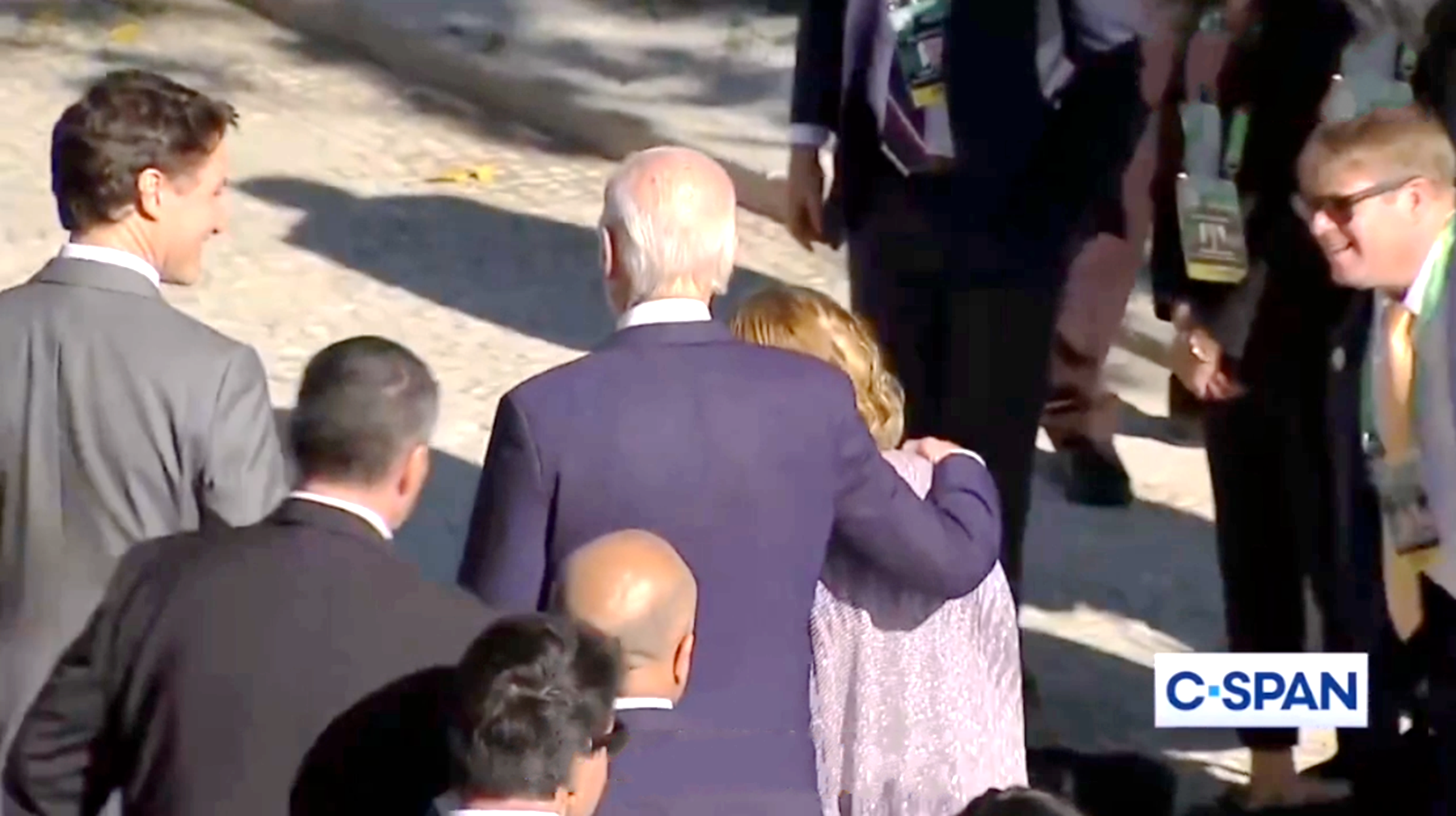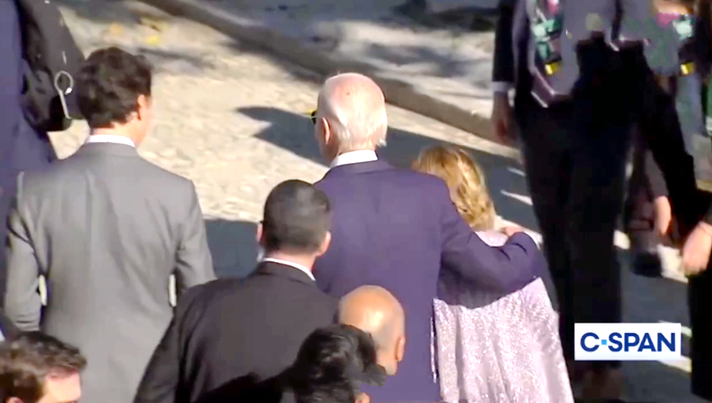 而拜登和加拿大总理突然发现意大利美女总理不见了,两人还回头找了一下,由于没有看到意大利美女总理,加拿大总理也自己离开了拜登,剩下拜登一个人站在哪里不知道该怎么办,还好拜登的助理和工作人员上来和他说了一些话,这个时候拜登才跟着队伍向前走了。大家看到后也是纷纷吐槽拜登真的是年龄大了。