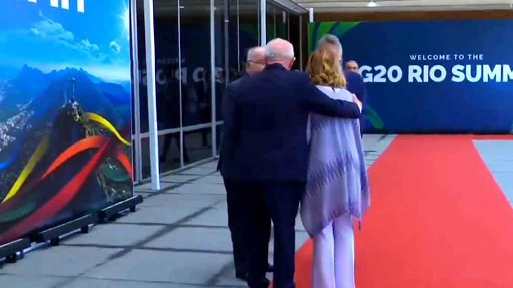 当然在这次G20峰会上意大利美女总理可以说成了香饽饽,不仅拜登看到他懒肩膀,作为这个峰会的东道主巴西总统看到意大利美女总理也揽腰揽背,还贴脸问候。据悉在昨天峰会欢迎仪式上,意大利美女总理打扮可是非常时尚,一件紫色的披风搭配白色休闲裤闪耀登场。意大利美女总理出场不仅造型时尚连走路也超级有范,她的到来就像是模特走红毯一样。