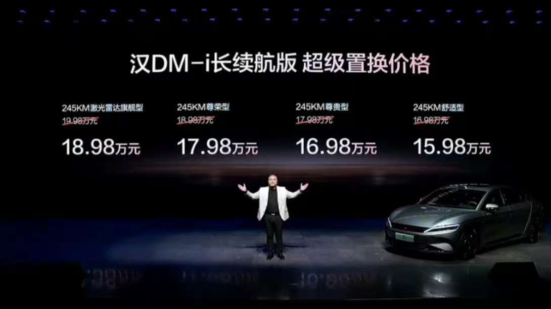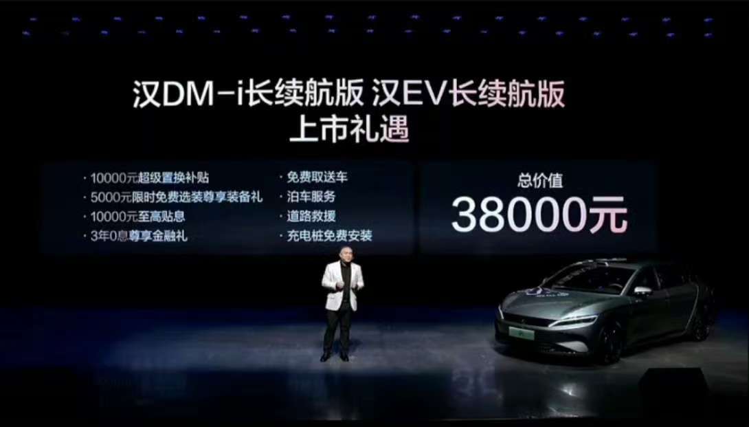 此次,汉DM-i长续航版共推出4款车型,补贴后售价15.98万~18.98万元;汉EV长续航版共推出3款车型,补贴后售价17.38万~20.58万元(10.31日前完成购车可享1万元超级置换补贴)。同时,比亚迪还为用户准备了包含置换补贴在内的至高价值3.8万元七大礼遇。