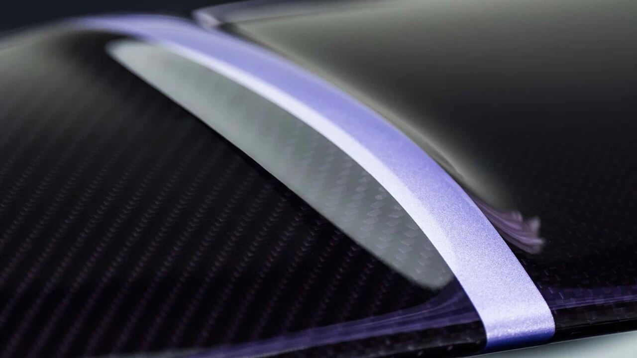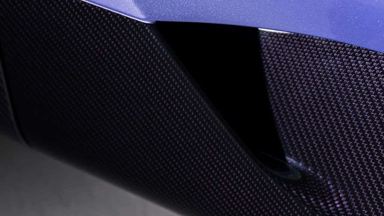车身下半部分则采用裸露的“紫色碳纤维”材质,这种特殊的染色碳纤维,为整车增添了视觉层次感与结构质感,与上层薰衣草车漆形成绝妙呼应,将优雅与性能完美平衡 。