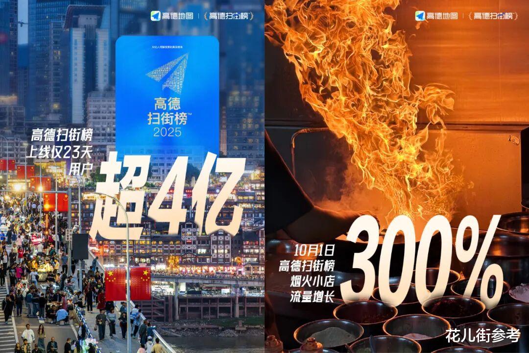 而作为国内最大的美食生活服务榜单,10月3日,高德扫街榜宣布:上线仅23天,累计使用人次超4亿。10月1日,烟火小店流量增长300%,餐饮行业订单量增长150%,为线下服务业带去数千万客流。