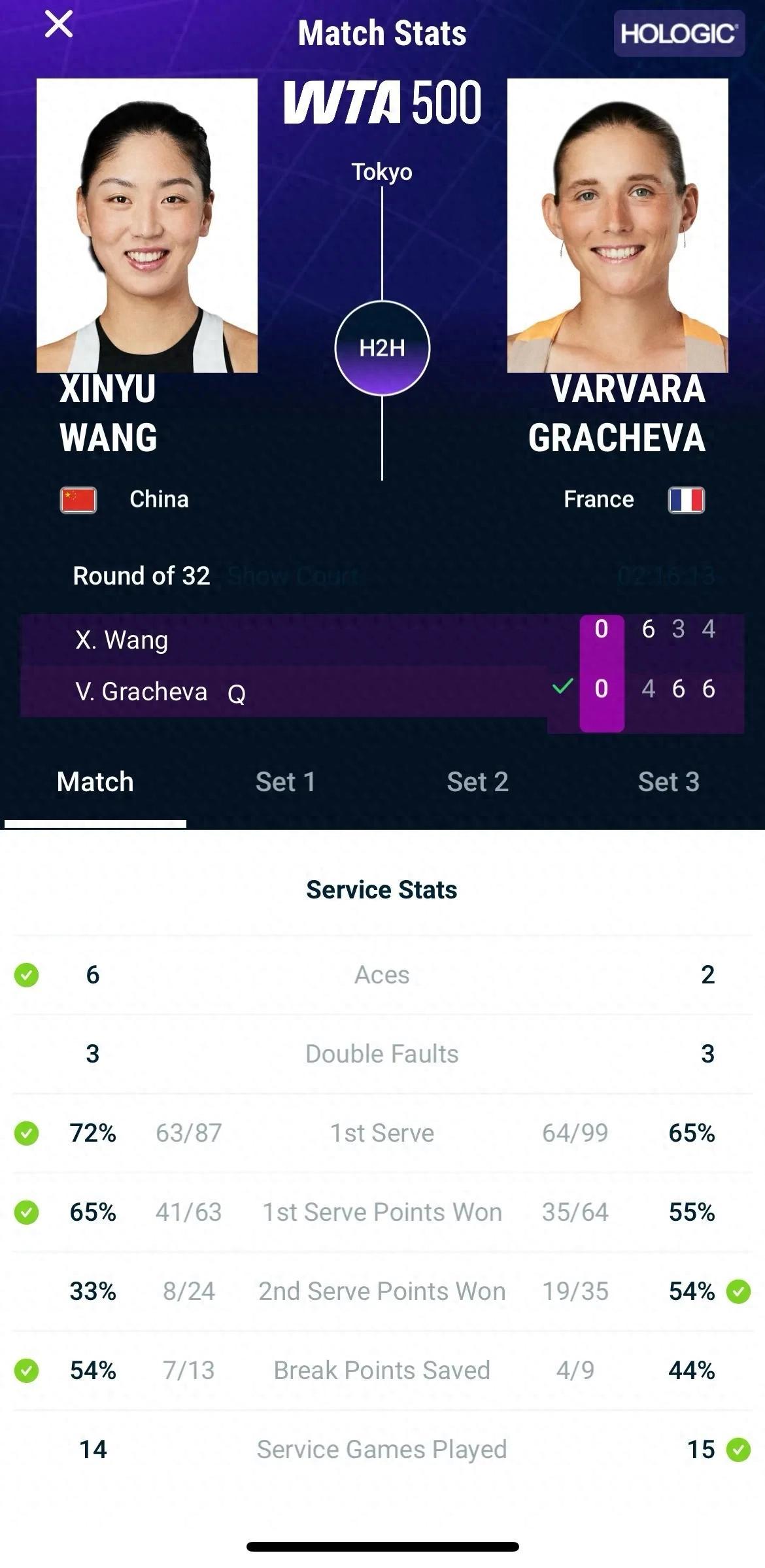 我意识到,对王欣瑜这个类型的球员来说,发球不仅仅是拿分的手段,它更是整个战术体系的起点,一发进不去,二发软绵绵,后续的底线进攻优势就根本无从谈起,之前宁波站的手肘伤势,看来影响还在持续,亚洲赛季这么密集,身体疲劳也会放大这个技术短板。所以,发球的问题不解决,她后续的比赛会打得非常挣扎。