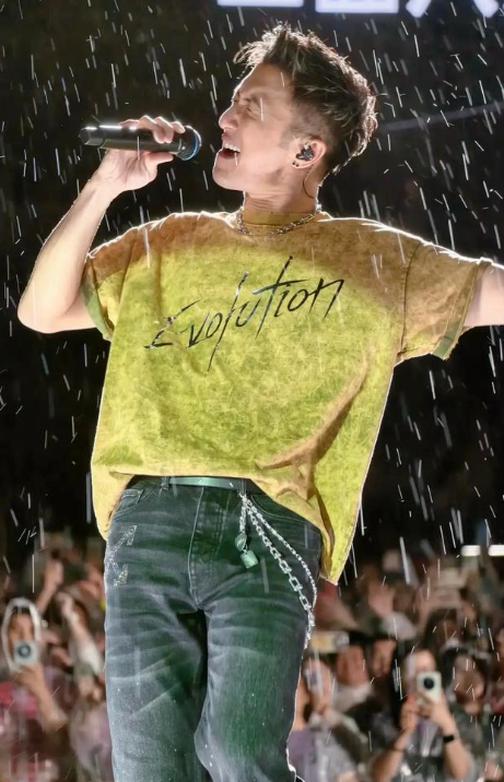 现场歌迷沉浸在这场音乐盛宴中,荧光棒挥舞,大声合唱。尽管雨天舞台湿滑,谢霆锋仍全情投入演出,展现出“拼命三郎”的本色。