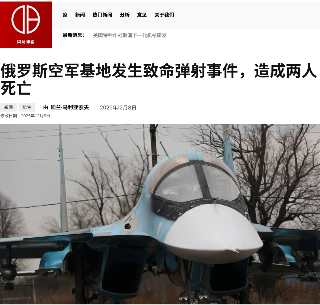 防务博客网站12月8日援引Telegram(电报或纸飞机)频道“战斗机与轰炸机”主持人伊利亚·图马诺夫透露的消息,意外事件让俄军不幸损失了两名轰炸机飞行员。