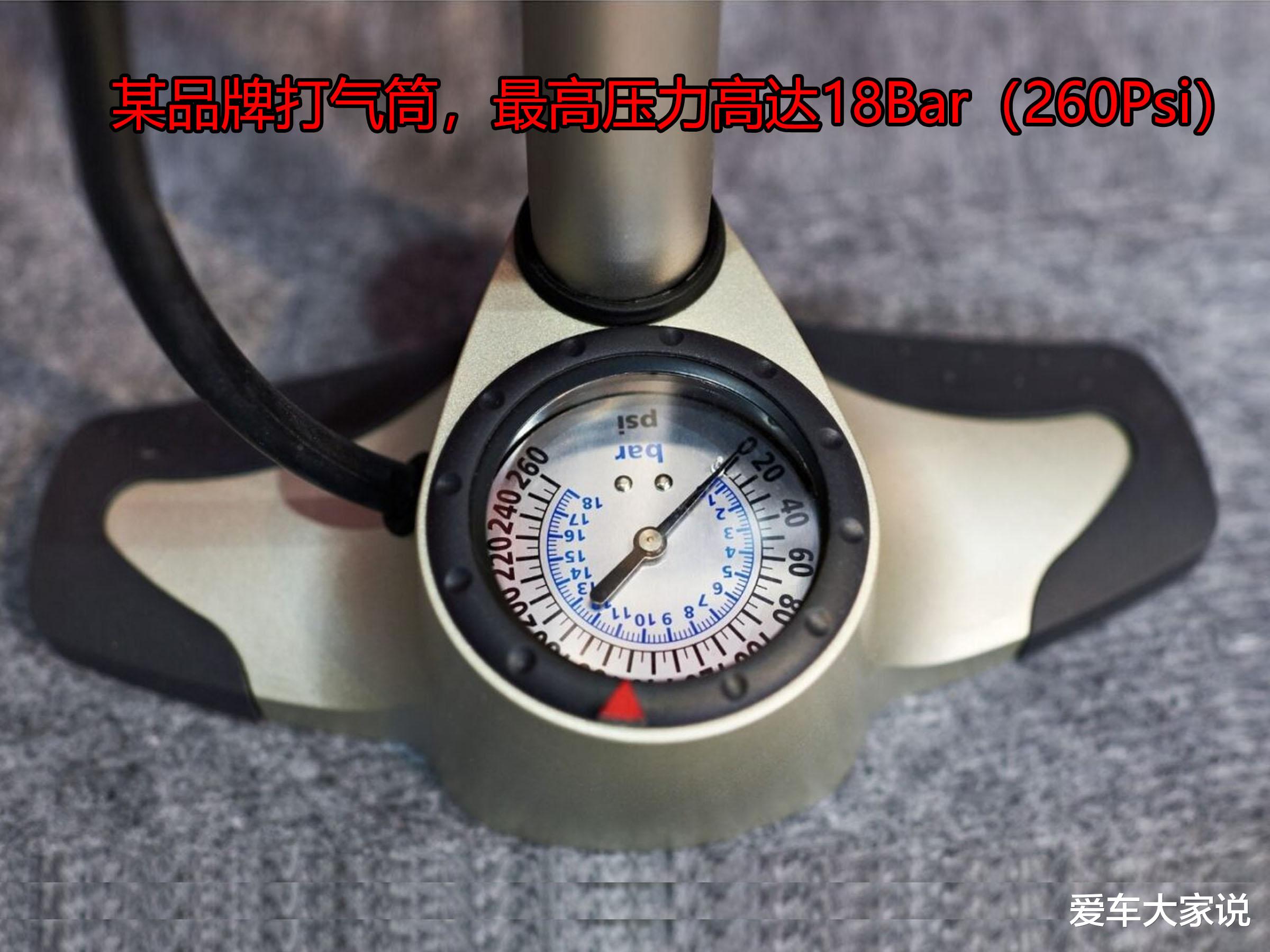 但事实可能出乎很多人意料:自行车轮胎的压力可是远高于汽车的,而打气筒能产生的最大压力更高。一般汽车胎压在2.2Bar-2.5Bar之间,自行车胎压在2.1Bar-4.5Bar之间,有些公路自行车高性能轮胎的胎压甚至高达9Bar。而打气筒能产生的压力可以轻松突破10Bar。